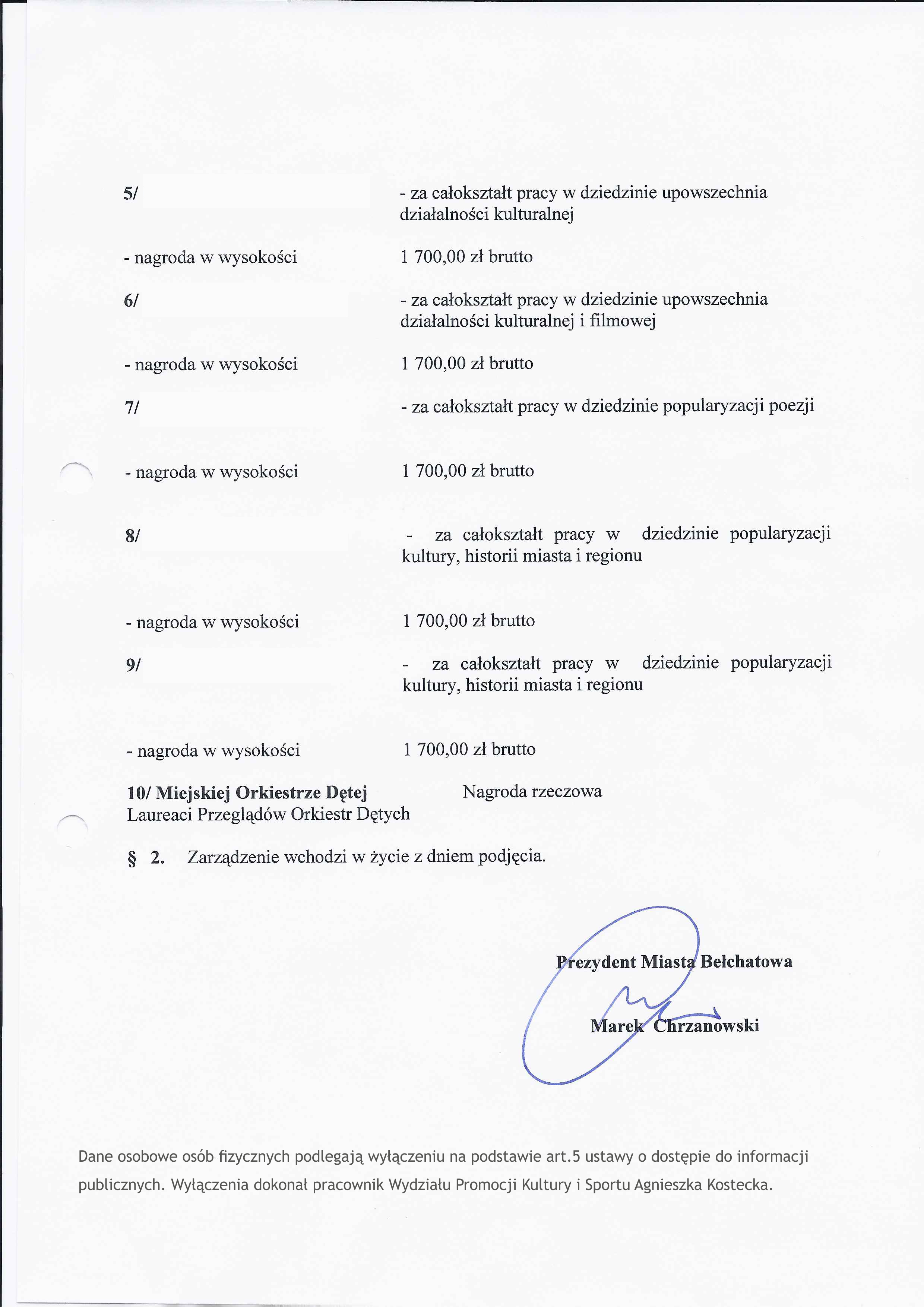 Zarządzenie w sprawie przyznania nagród - GKS Bełchatów SSA.doc