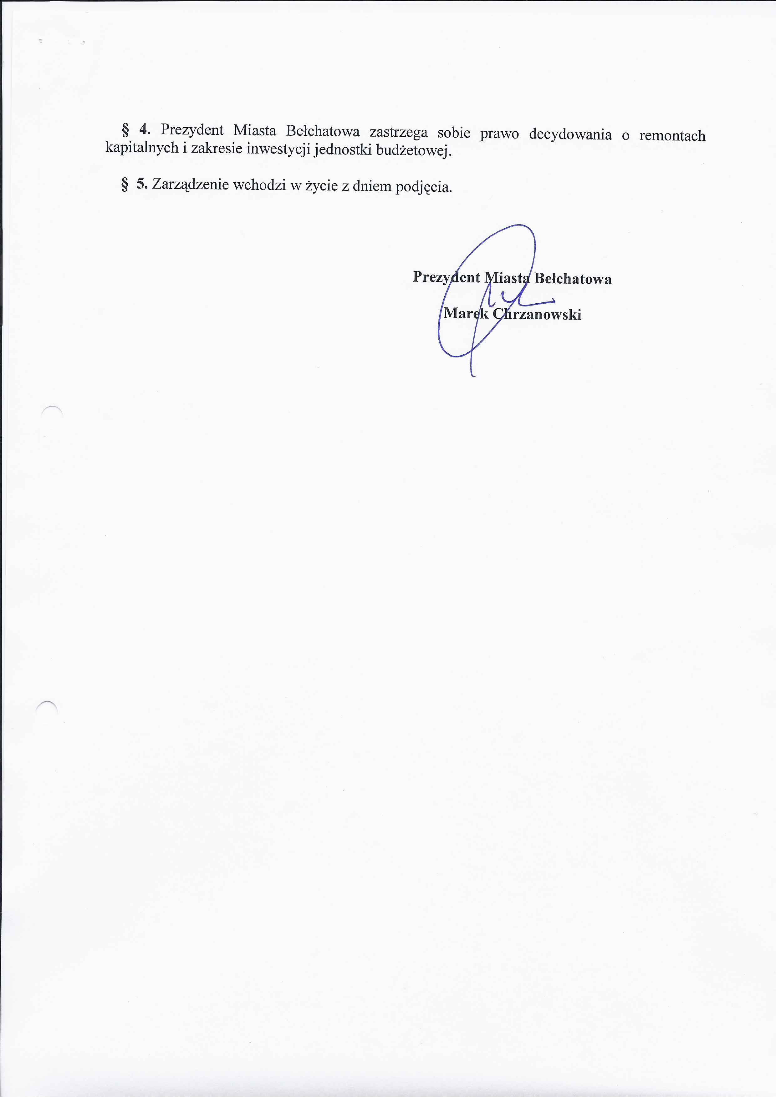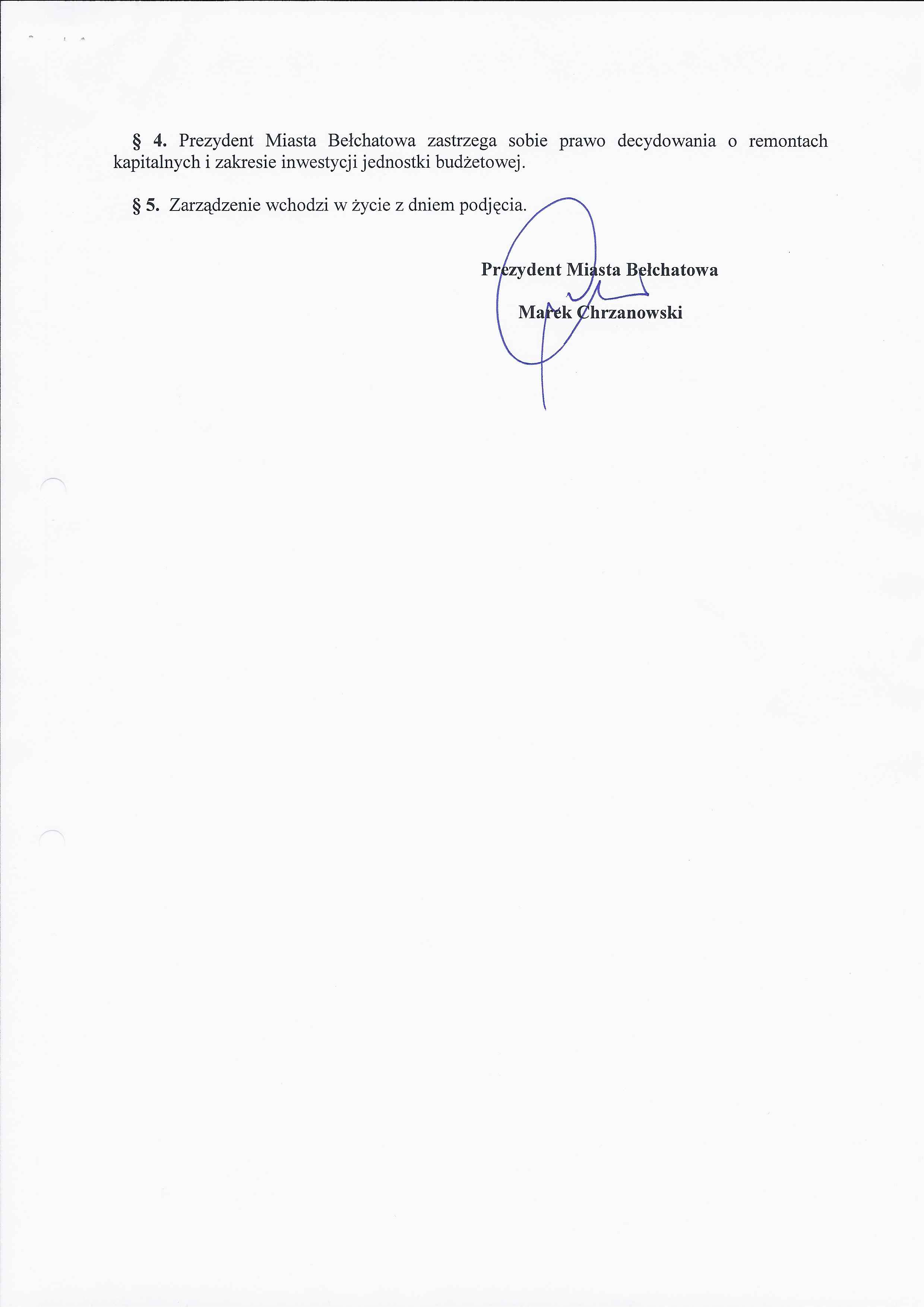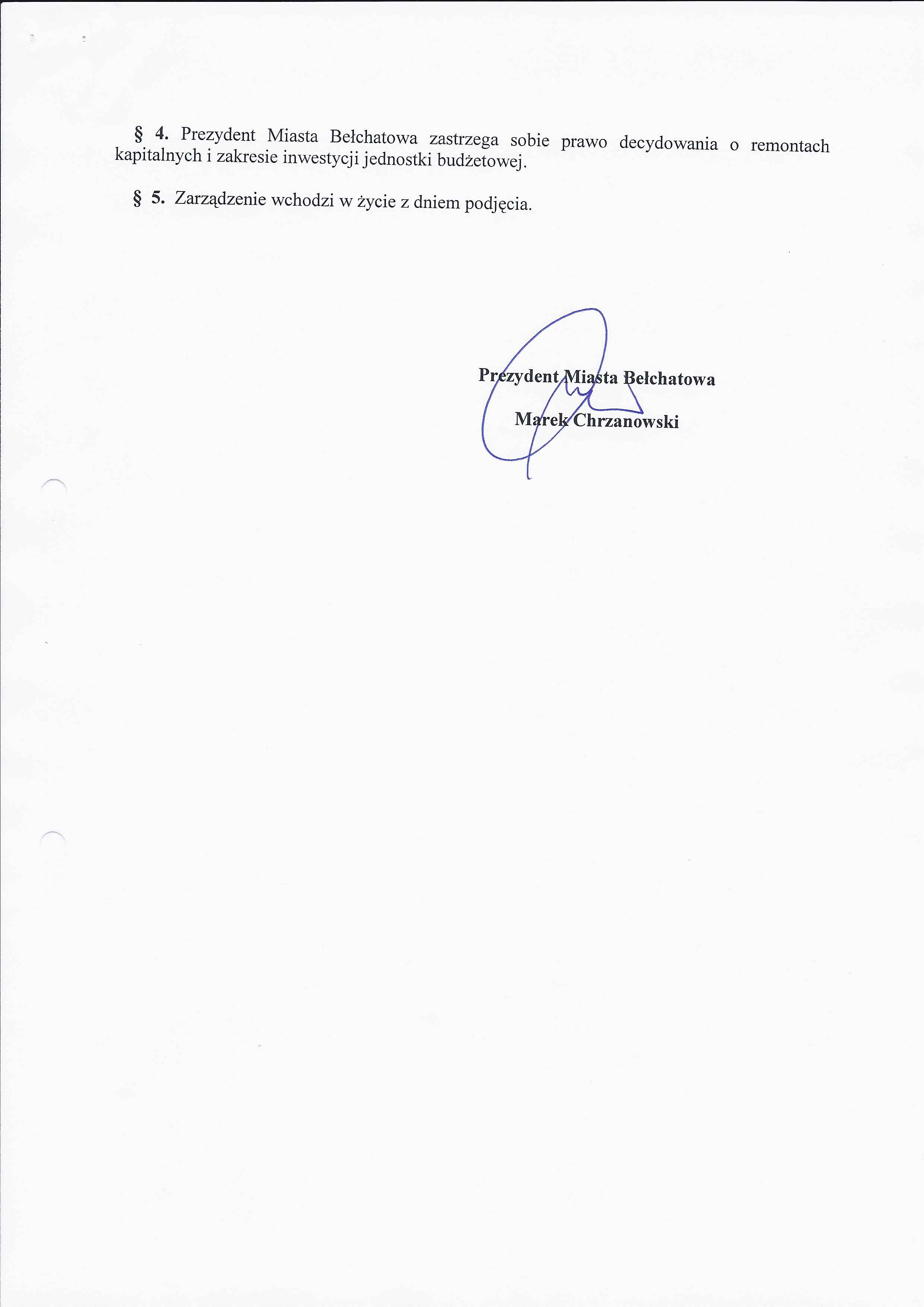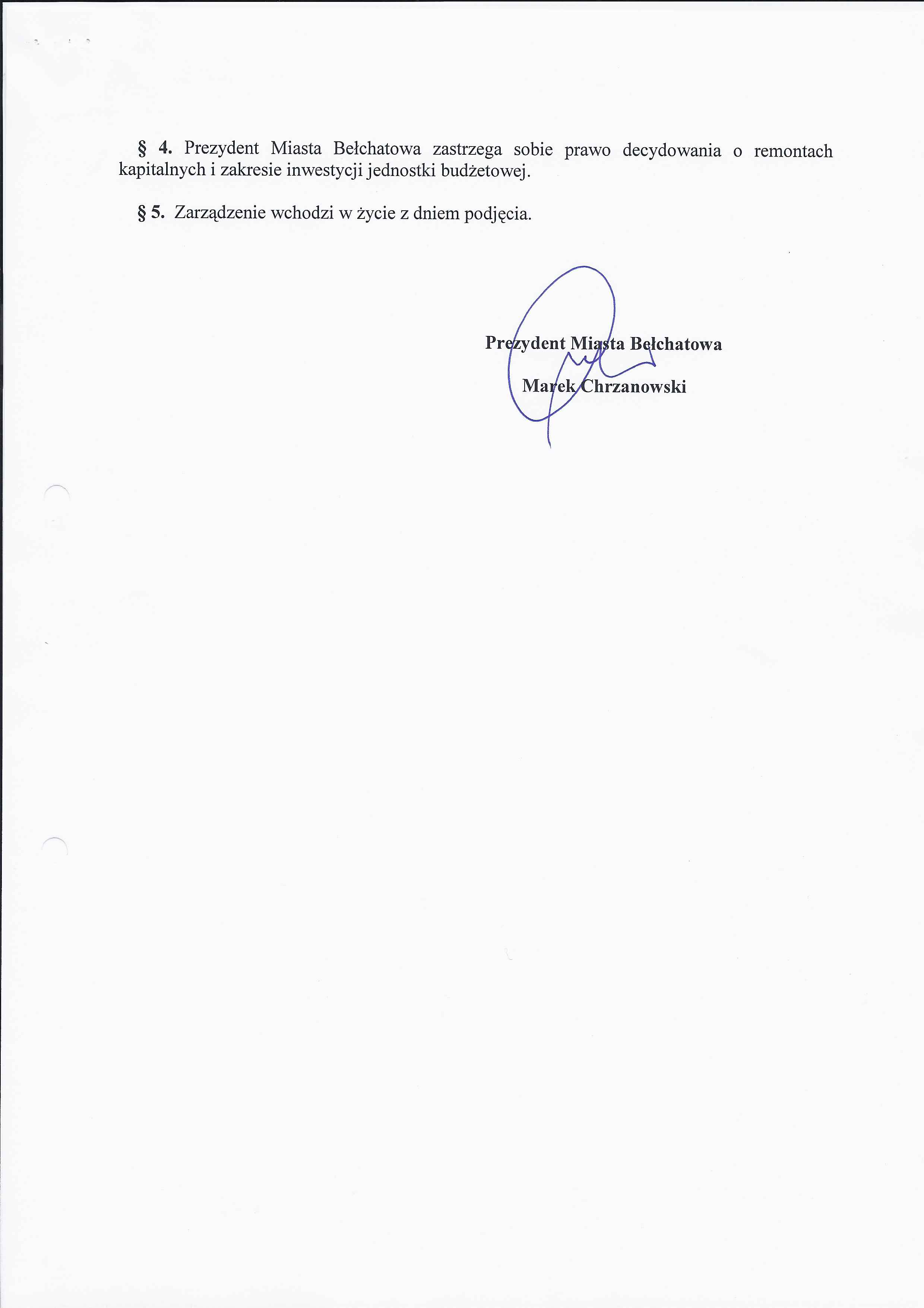 Zarządzenie Nr 216 z dnia 3 września 2012 r. w/s udzielenia pełnomocnictwa dyrektorowi Publicznego Gimnazjum Nr 5 w Bełchatowie