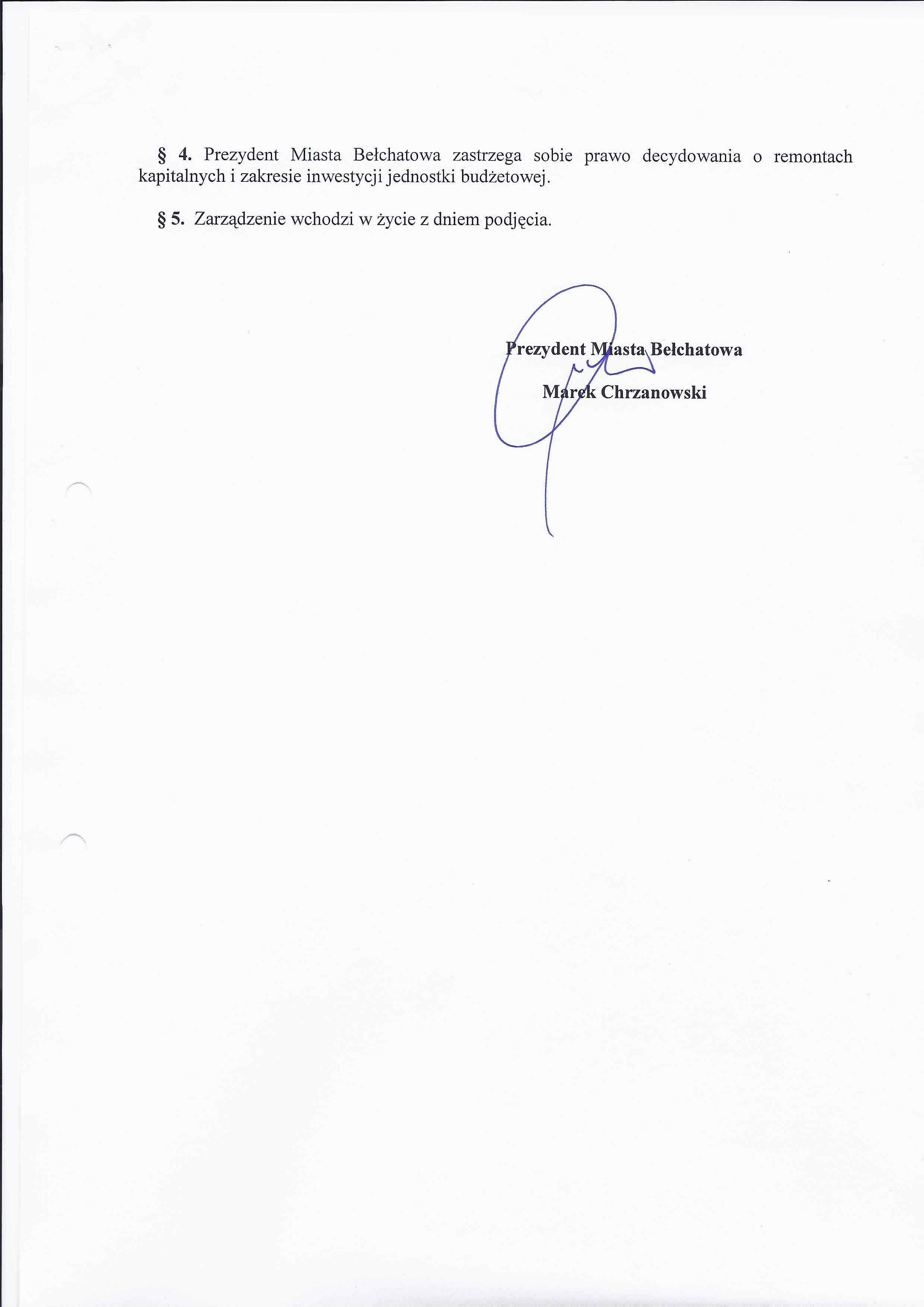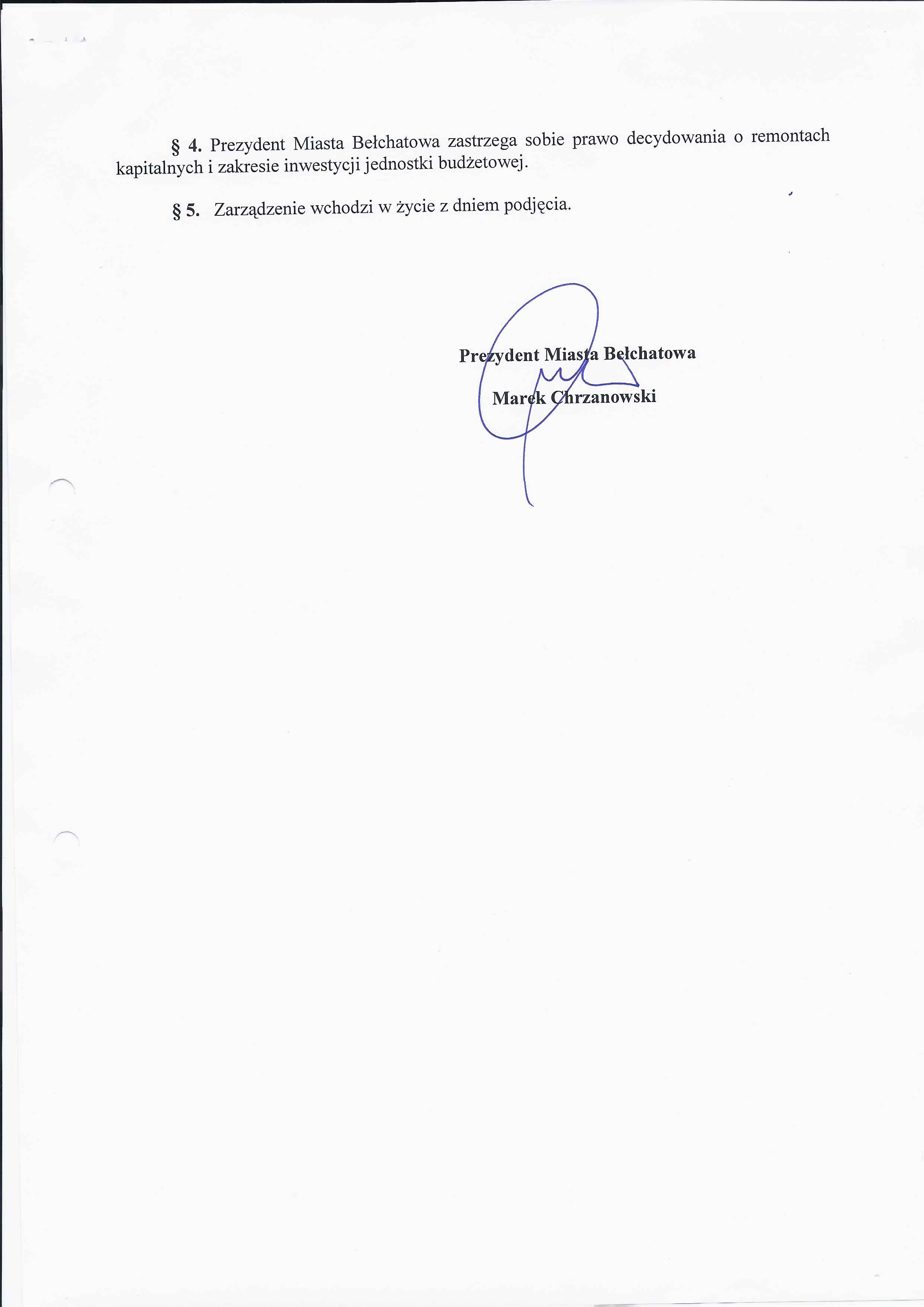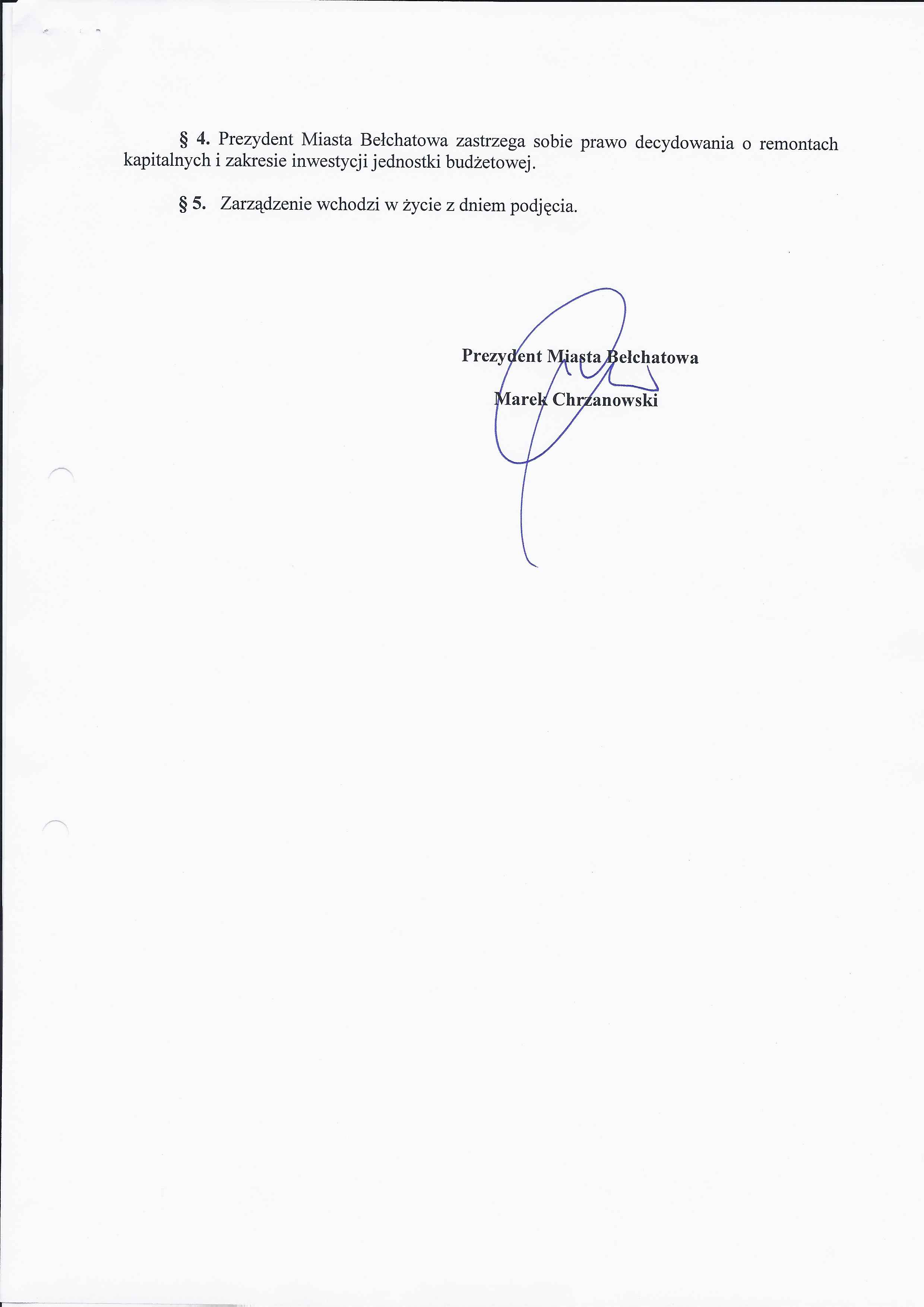 Zarządzenie Nr 206 z dnia 3 września 2012 r. w/s nieodpłatnego nabycia środków trwałych - budowli w postaci przyłączy wodociągowych, urządzeń kanalizacji sanitarnej i deszczowej na majątek Miasta Bełchatowa