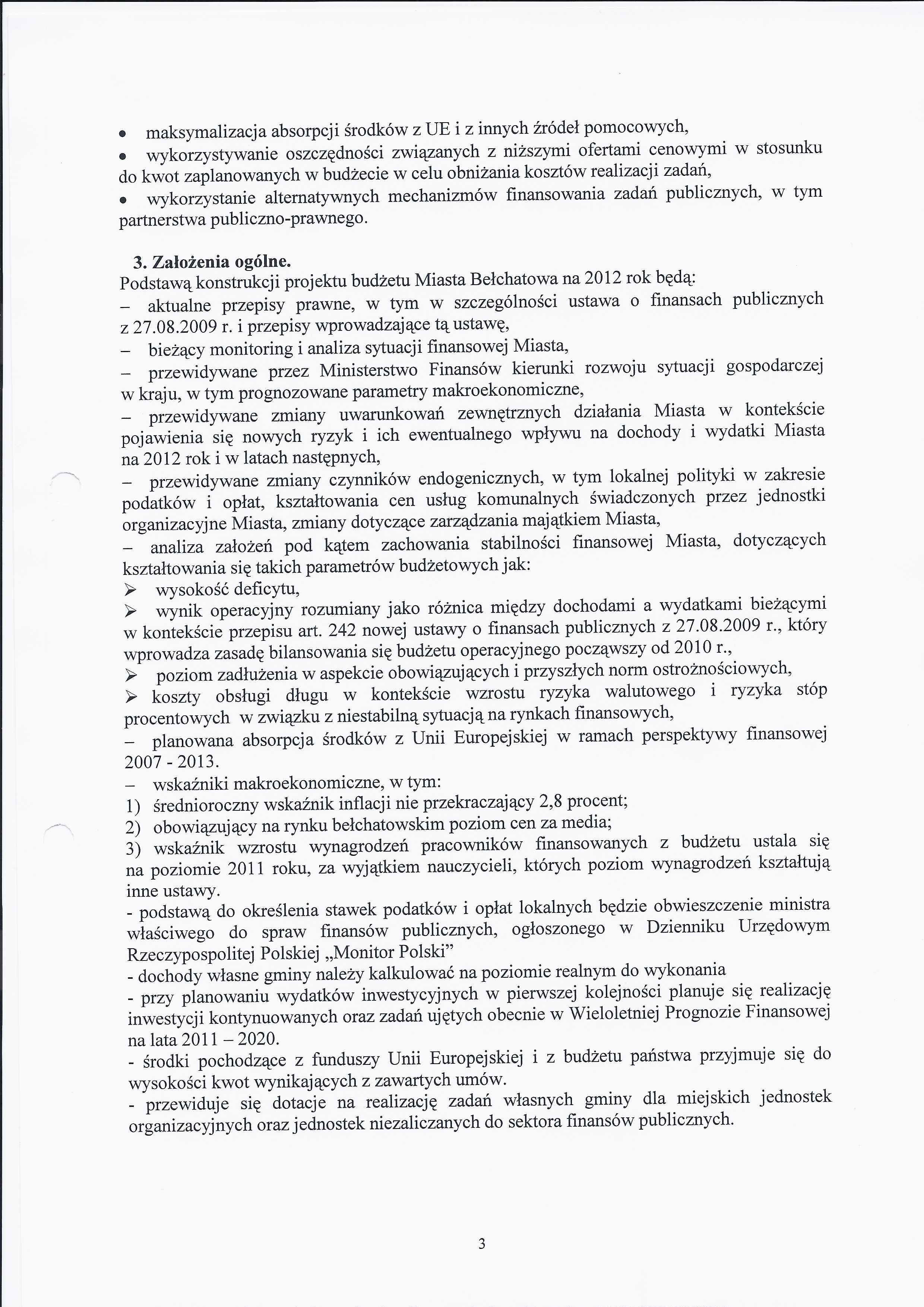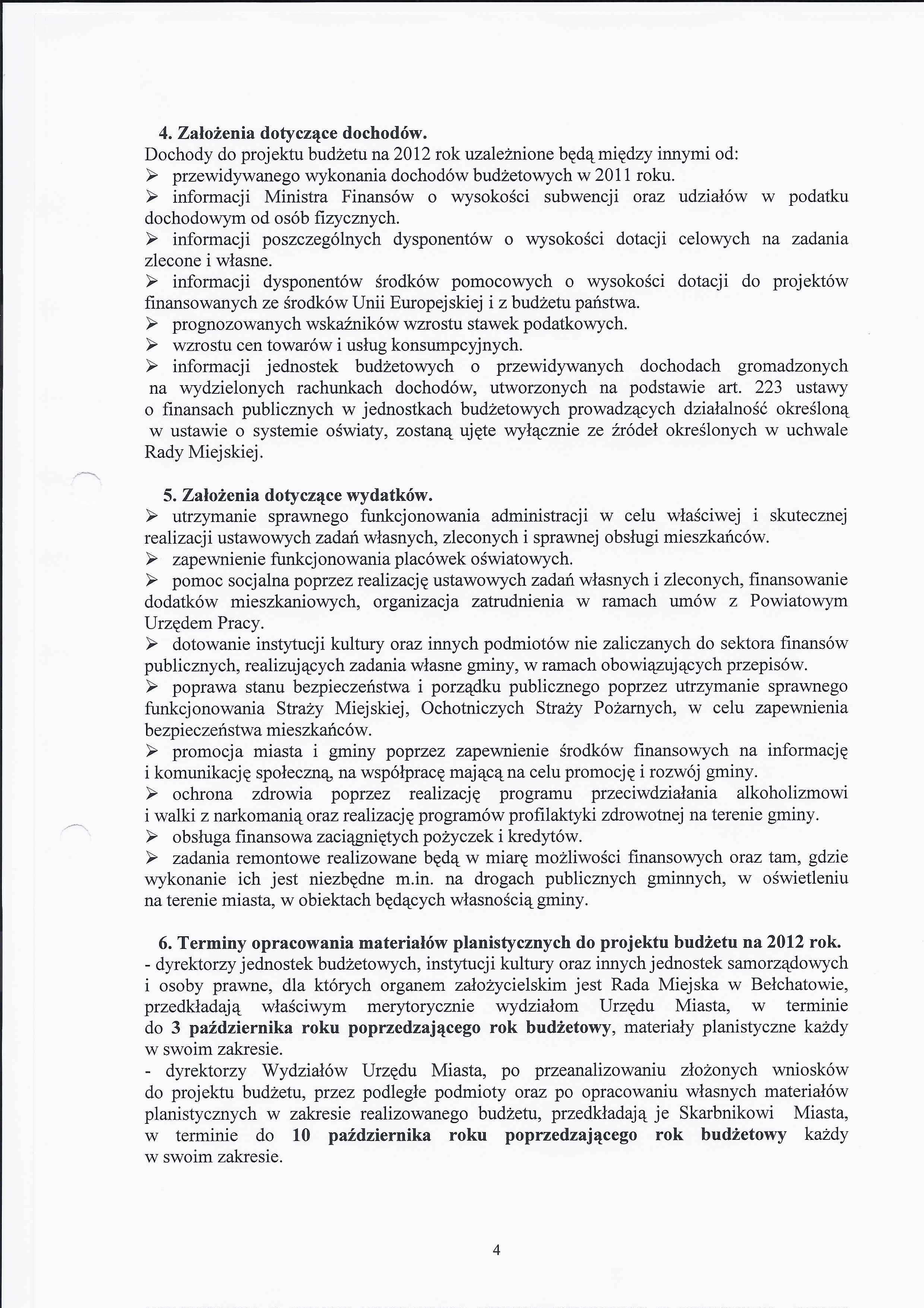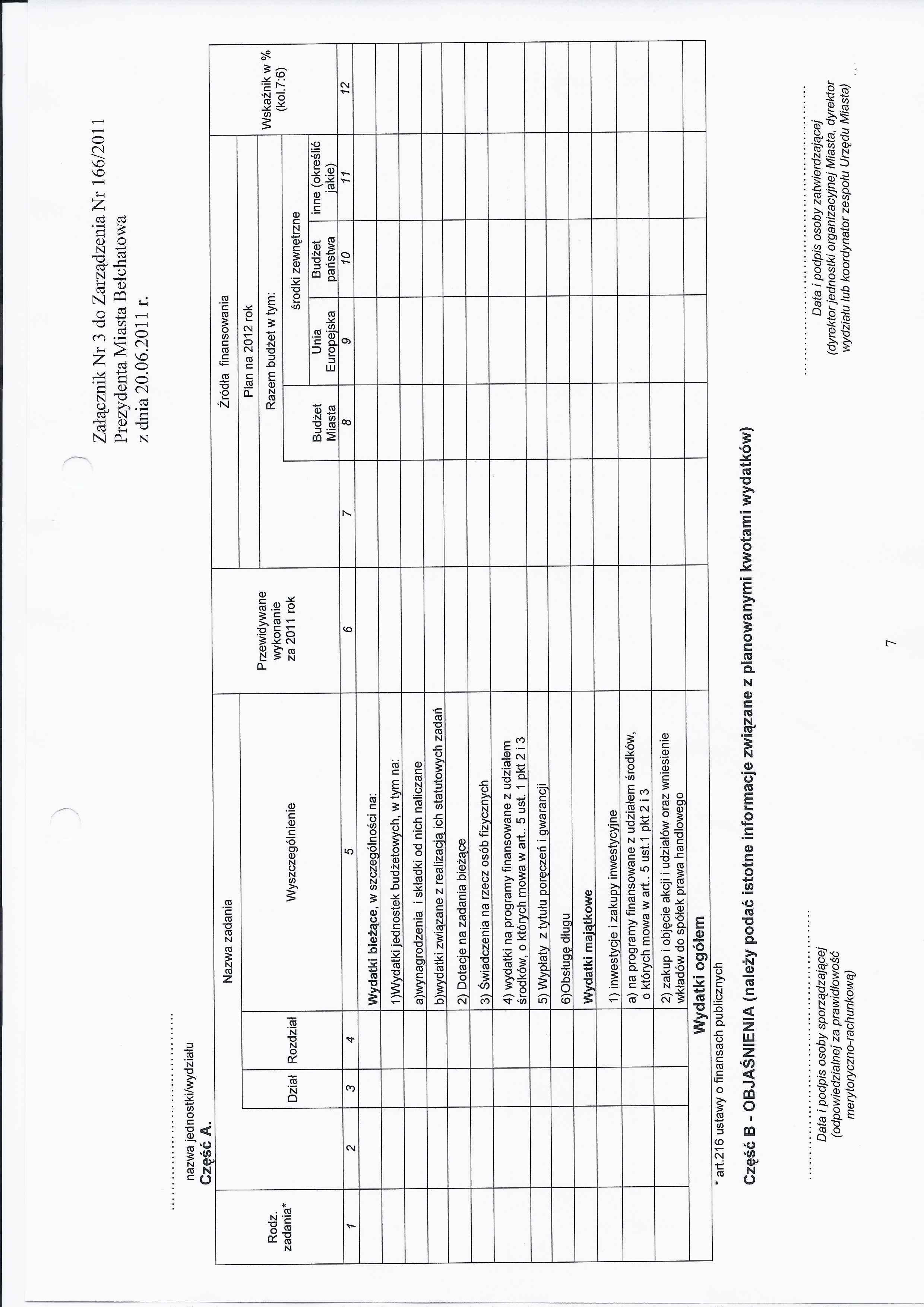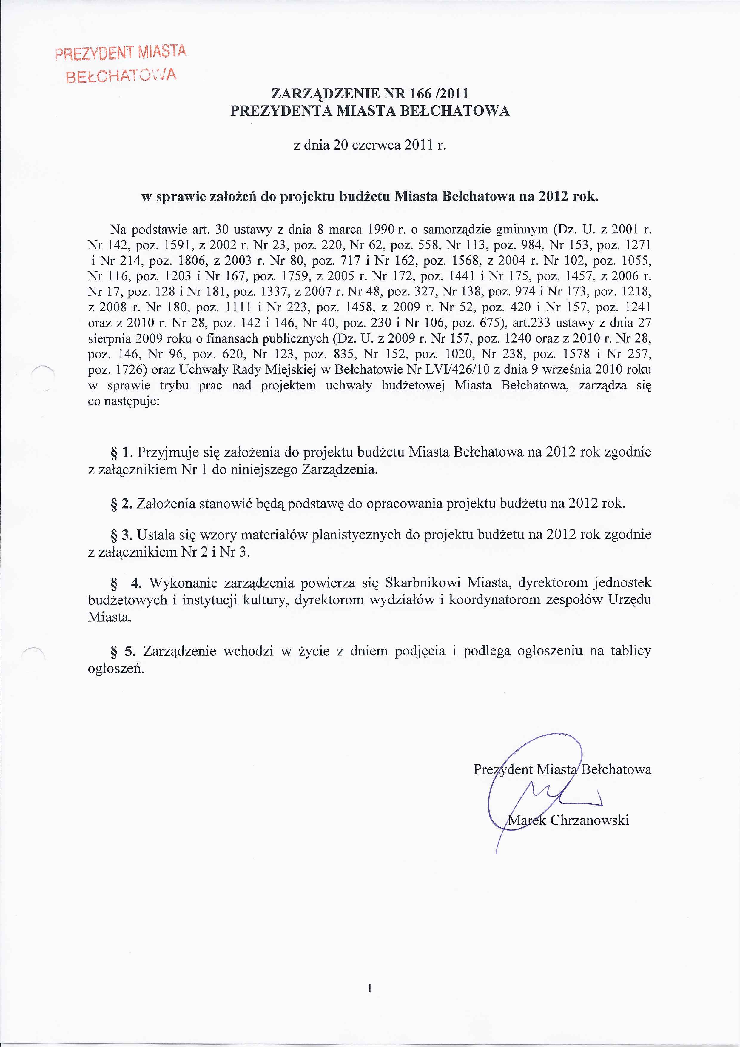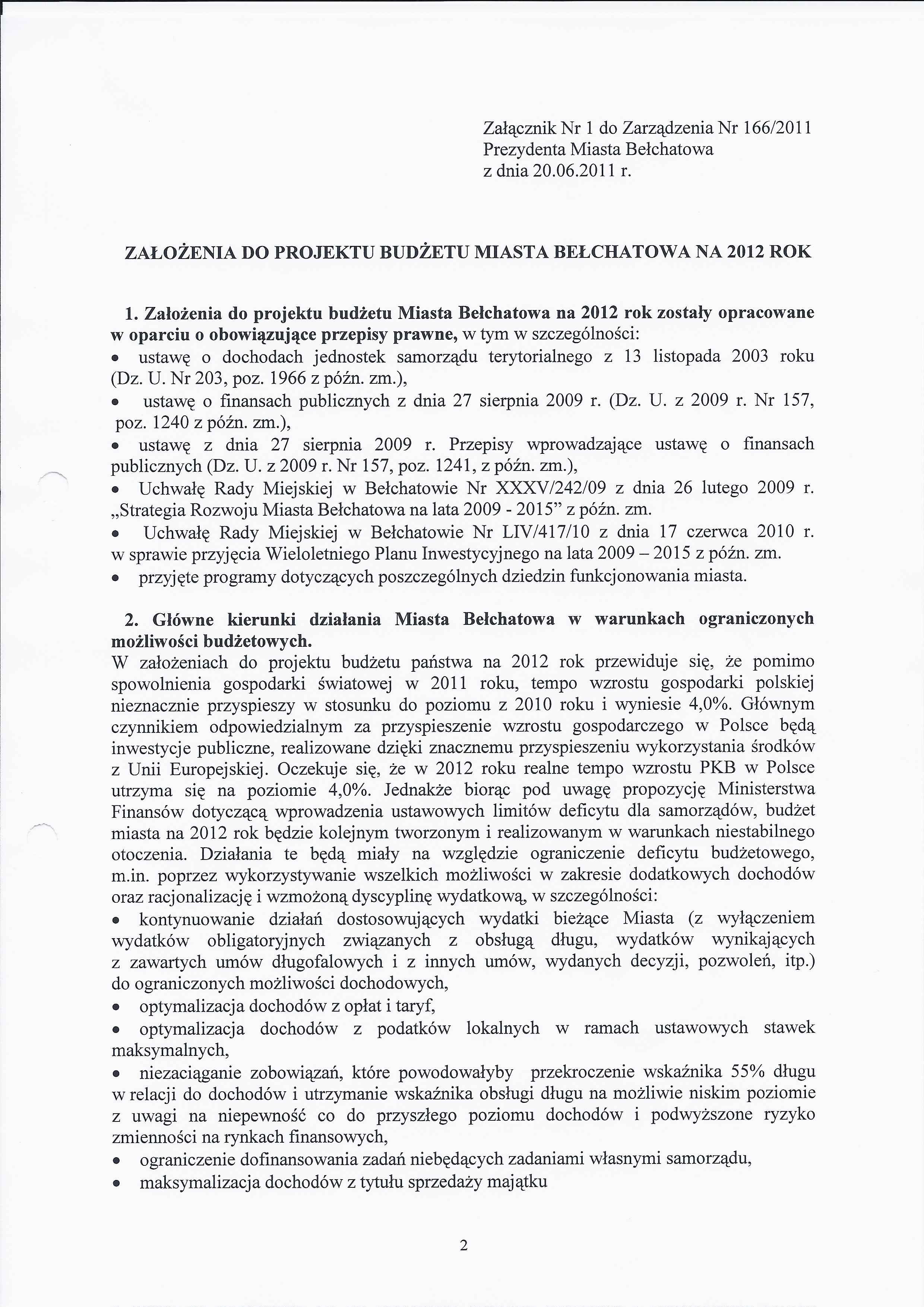 Zarządzenie Nr 166 z dnia 20 czerwca 2011 r. /s założeń do projektu budżetu Miasta Bełchatowa na 2012 rok